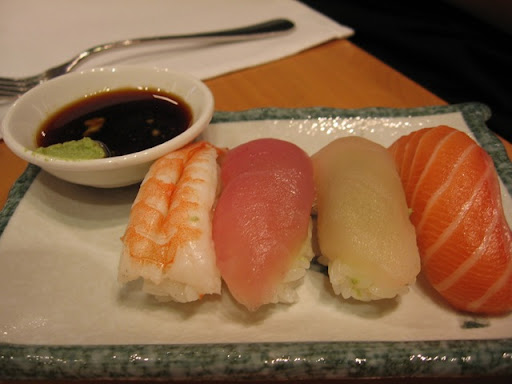這是握壽司 相當好吃 我喜歡蝦口味的!