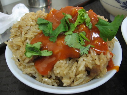滿滿的飯拌上生魚片 加上一些蔥醋調味 相當好吃