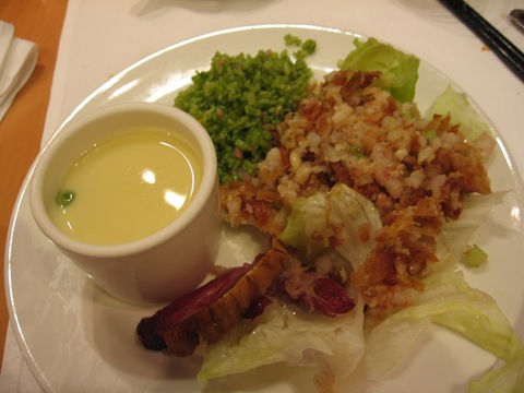 這是茶碗蒸 翡翠炒飯 生菜蝦鬆 以及德國豬腳